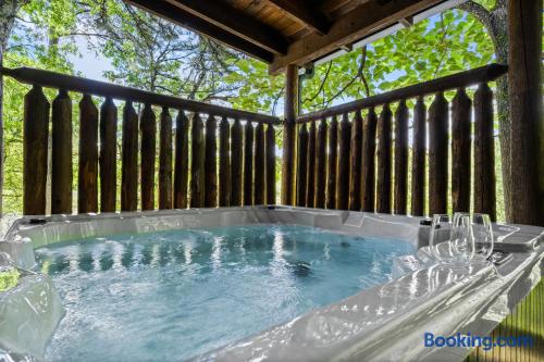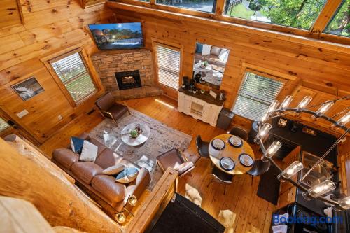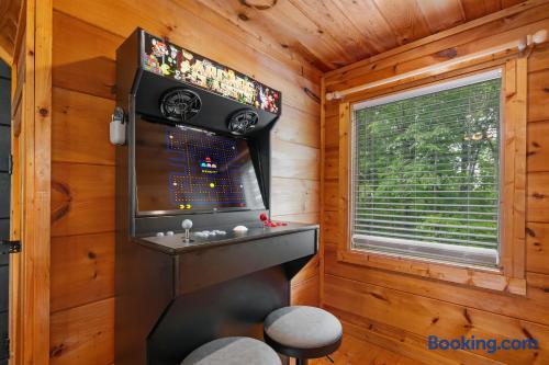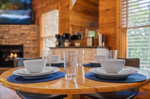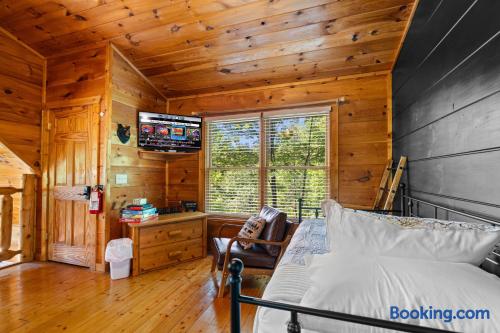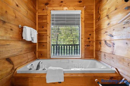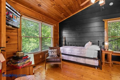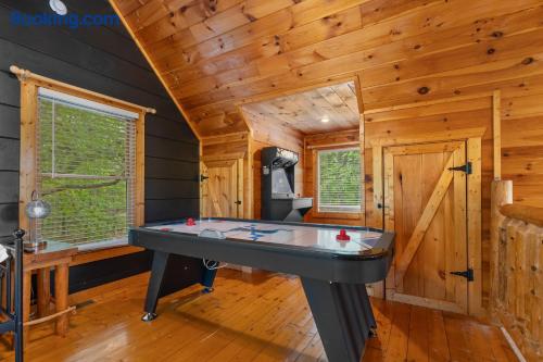 Cozy mountain cabin retreat between Gatlinburg and Pigeon Forge. Welcome to our charming cabin, perfectly situated less than 8 miles from both Gatlinburg and Pigeon Forge! Whether you're looking for adventure in the Great Smoky Mountains or a peaceful getaway, our cabin offers the perfect home base with its modern amenities. Living Area: Relax and unwind in the cozy living space, featuring a 65" 4K Smart TV, a gas fireplace, and inviting seating — ideal for winding down after a day of outdoor fun. High-speed internet ensures you can easily stay connected. Kitchen & Coffee Bar: The fully equipped kitchen has everything you need to prepare delicious meals when you prefer a night in. Enjoy our well-stocked coffee bar, complete with a Keurig machine, a standard drip coffee maker, and an electric kettle for tea lovers. Master Suite: Located on the main floor, the spacious master suite offers a luxurious king-size bed and a relaxing in-room jacuzzi tub. The en-suite bathroom includes a convenient shower/tub combination. Outdoor Space: Step outside onto the spacious deck and soak in the private hot tub, surrounded by the tranquility of the mountains. Comfortable outdoor seating makes it the perfect spot to sip your morning coffee, read a good book, or simply enjoy great company. Loft Area: The upstairs loft is a fun and versatile space for both kids and adults. It features a twin daybed with trundle, a 4K Smart TV, an air hockey table, and an arcade machine with classic games. You'll also find a full-sized washer and dryer for your convenience. Additional Information: Roads: The cabin is nestled in the mountains, and while the drive is beautiful, the roads can be steep. In snowy weather, a 4-wheel drive vehicle may be necessary. Starter Supplies Provided: We offer a starter supply of toilet paper, paper towels, hand soap, coffee beans, tea bags, dishwashing soap, laundry detergent, shampoo, conditioner, and body wash. For longer stays, you may want to bring additional supplies along with any spices, oils, or extra toiletries you prefer. Well Water: The cabin is on a well system. The water is safe to drink, though it may contain natural mineral deposits. We recommend bringing bottled water if you prefer. Nature: You’re likely to spot some of the local wildlife, including black bears🐻! Please remember not to approach or feed them — it’s important to keep these beautiful animals wild and safe. Cleanliness: We charge a cleaning fee to ensure the cabin, including the hot tub (which is drained, sanitized, and refilled after each stay), is thoroughly cleaned for every guest. Why you'll love our place! 💕💕💕 🛏️Romantic in-room jacuzzi 🛁Private hot tub 🔥Gas fireplace for cozy evenings 🎮Family fun with air hockey, arcade machine & board games ☕Coffee bar with Keurig, drip, and tea set-up 📺Smart TV in living room, bedroom & loft 👚Full size washer and dryer 🎡8 miles from Dollywood / 7 miles from Anakeesta 🛜 Fast wifi